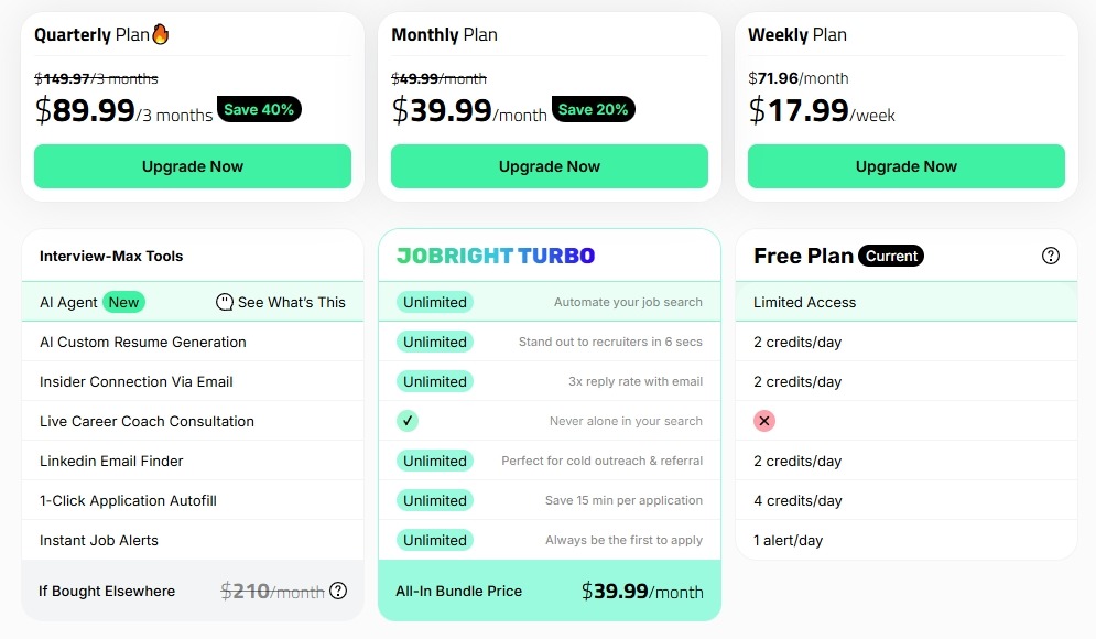 To avoid relying only on third-party mentions, we also spent time exploring Jobright AI directly and went through the website and upgrade flow ourselves. Since pricing details can change and are not always fully shown on public pages, this helped us see how plans are actually presented to real users inside the platform, making it easier to understand what you would see before deciding to subscribe.