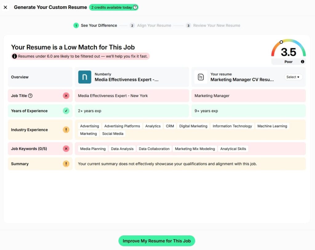 Keyword gap highlighting and job-specific tailoring can help you avoid obvious ATS misses, especially when the job description is explicit about tools and requirements.
