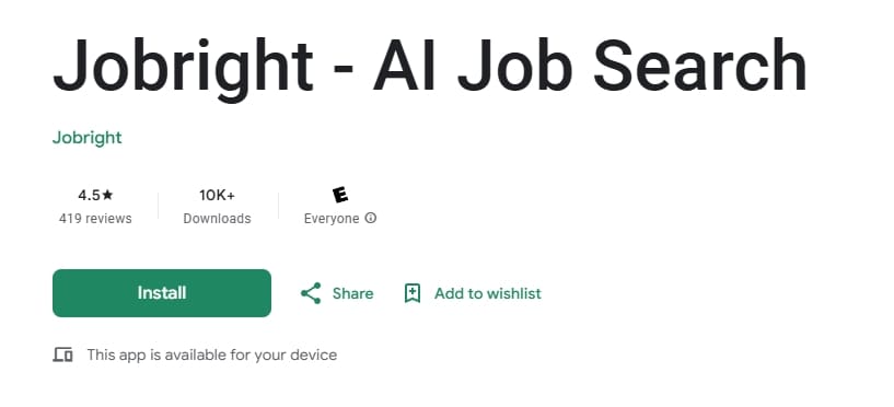 - The Android app listing also describes job matching, tracking, insider connections, and auto-apply or “fine-tune each application”.